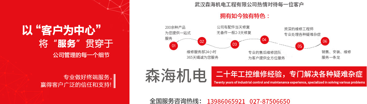 武漢森海機(jī)電工程有限公司是專(zhuān)門(mén)從事工業(yè)自動(dòng)化、倡導(dǎo)綠色環(huán)保節(jié)能的企業(yè)。主要業(yè)務(wù)方向?yàn)椋壕S修世界各國(guó)高低壓變頻器、伺服驅(qū)動(dòng)器、工業(yè)電路板、觸摸屏、PLC、直流調(diào)速器。